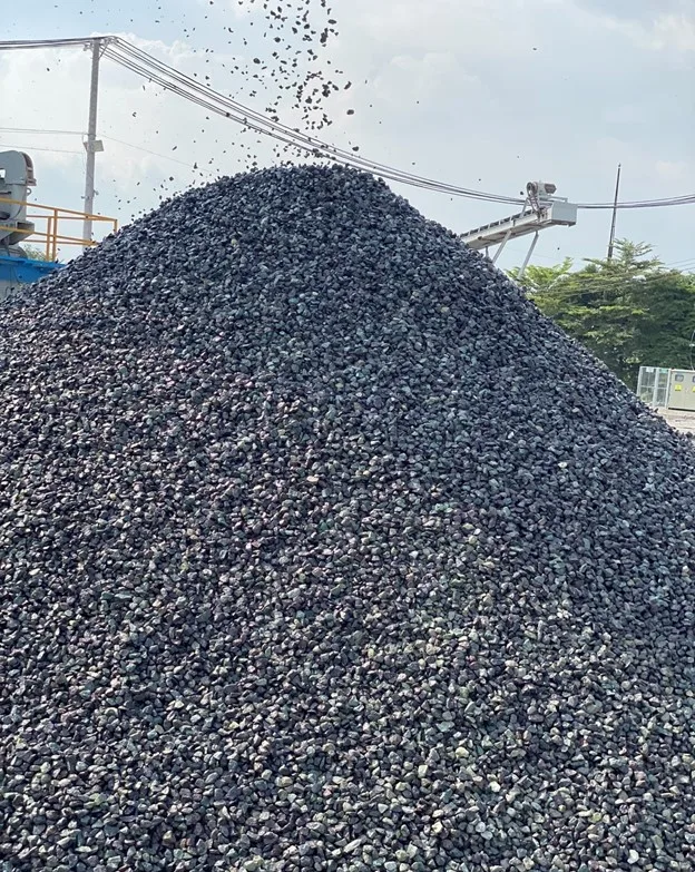 – Size 5-20mm. Produced by crushing and screening through a re-rolling system to ensure flatness <15%. At the same time, through a water washing process to ensure cleanliness <1%, color green, gray, light black depending on the exploited rock layer